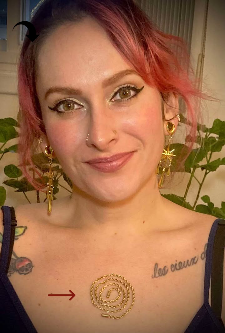 Glued directly to the skin — no clasps or chains to adjust